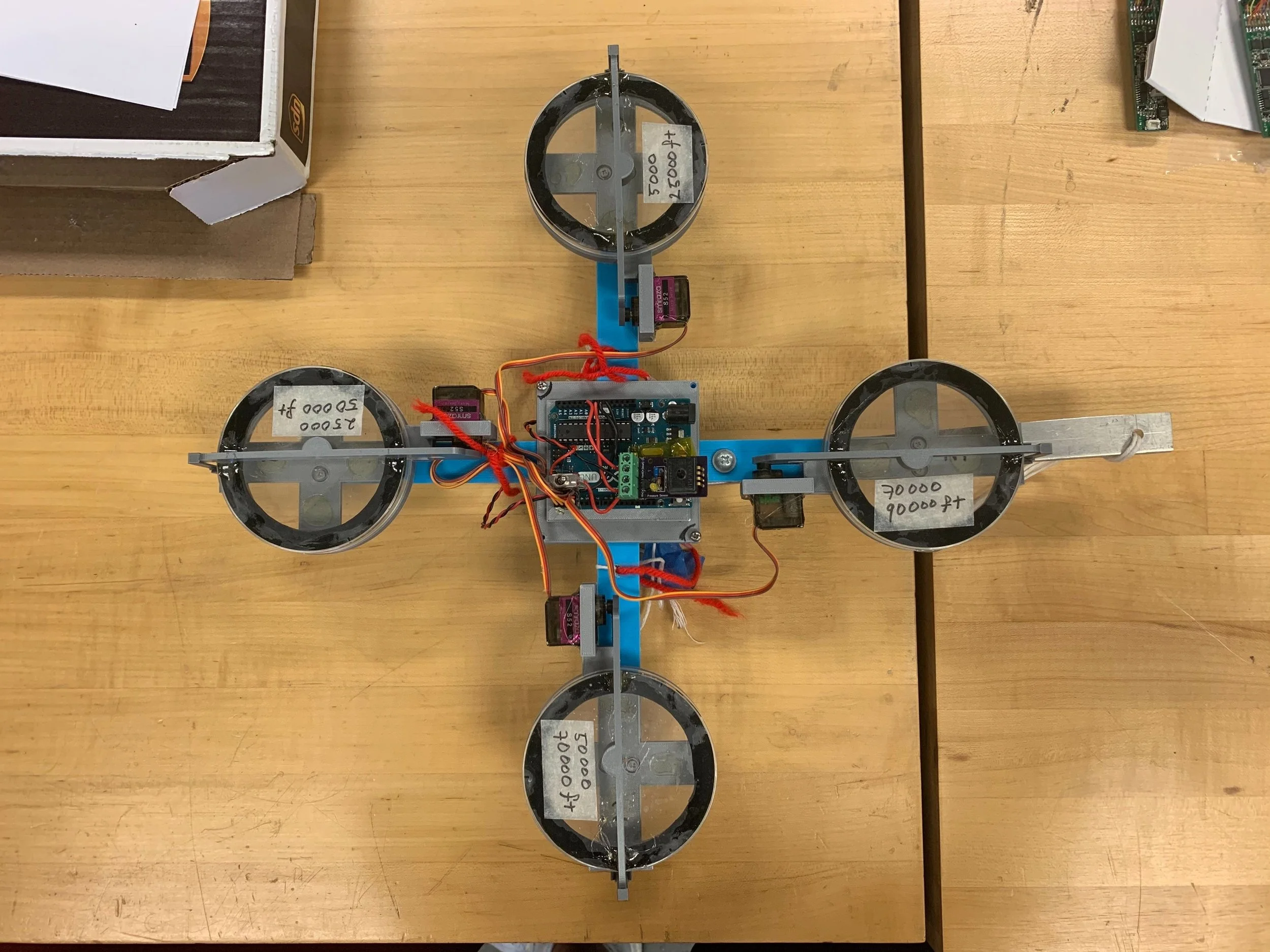 I worked on designing and testing a dust collector that will be connected on a high altitude balloon to study forest fires in the future. These are some photos of the prototype.